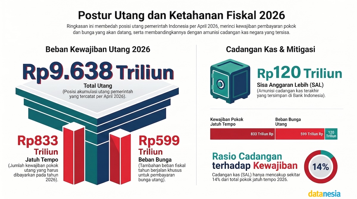 Mari kita bedah anatomi beban kita. Total utang pemerintah kini telah menyentuh angka Rp 9.638 triliun. Angka ini mungkin terdengar abstrak sampai Anda melihat jadwal penagihannya. Tahun ini, ada Rp 833 triliun utang yang jatuh tempo. Itu baru pokoknya. Jangan lupa, ada “uang sewa” berupa bunga utang sebesar Rp 599 triliun yang harus dibayar.