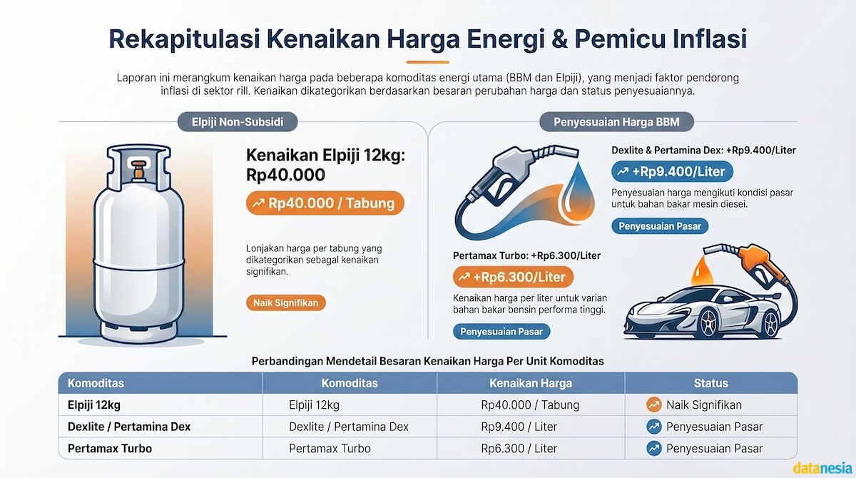 Efeknya sudah sampai ke dapur Anda. Kenaikan harga Elpiji 12 kg hingga Rp 40.000 dan lonjakan harga BBM non-subsidi—seperti Dexlite yang naik Rp 9.400 per liter—adalah transmisi langsung dari kegagalan kita menjaga asumsi makro. Saat Pertamax Turbo naik Rp 6.300, itu bukan sekadar angka di SPBU, itu adalah pengingat bahwa daya beli masyarakat sedang dipangkas secara paksa oleh keadaan.