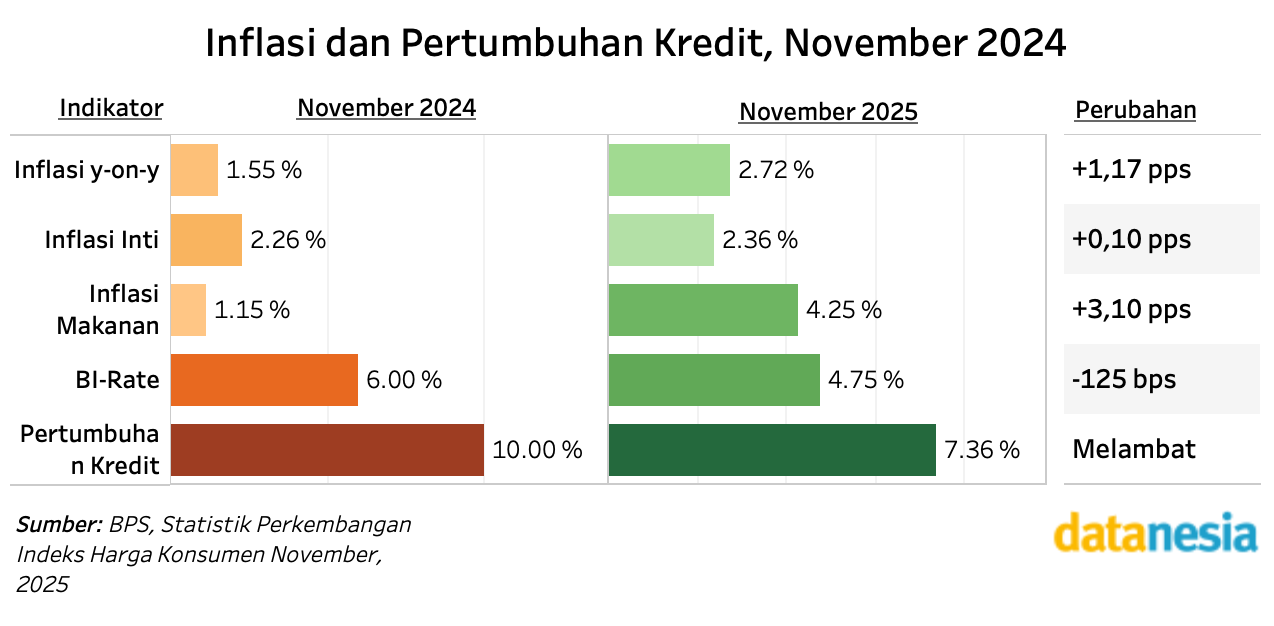 Dengan inflasi November 2025 di 2,72 persen dan inflasi inti di 2,36 persen, ruang pelonggaran moneter secara teoritis masih terbuka. Bank Indonesia telah memangkas BI-Rate sebanyak 125 basis poin sepanjang 2025, dari 6,00 persen di Desember 2024 menjadi 4,75 persen saat ini level terendah sejak Oktober 2022.